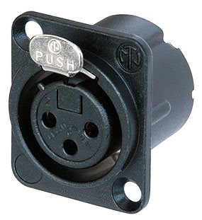NC3FD-LX-BAG 3 pin XLR chassis connector, black D-size flange, countersunk thru holes, solder cup termination.The XLR panel mount connectors are the standard chassis connectors for Microphone / amplifier interconnections.