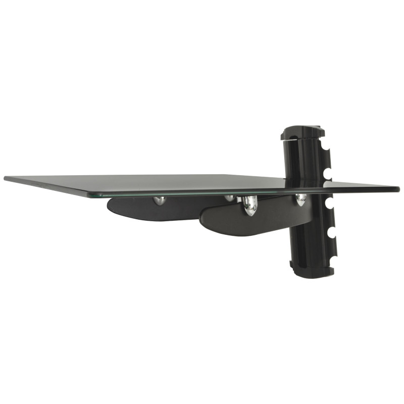 The DVDB1 Shelf Bracket is constructed of a 5mm tempered glass shelf, this stylish wall mountable glass shelf is ideal for supporting media boxes, Great for home cinema.