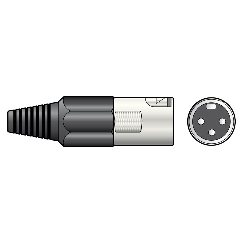 3-pin XLR connectors with strain relief and plastic cable protector.